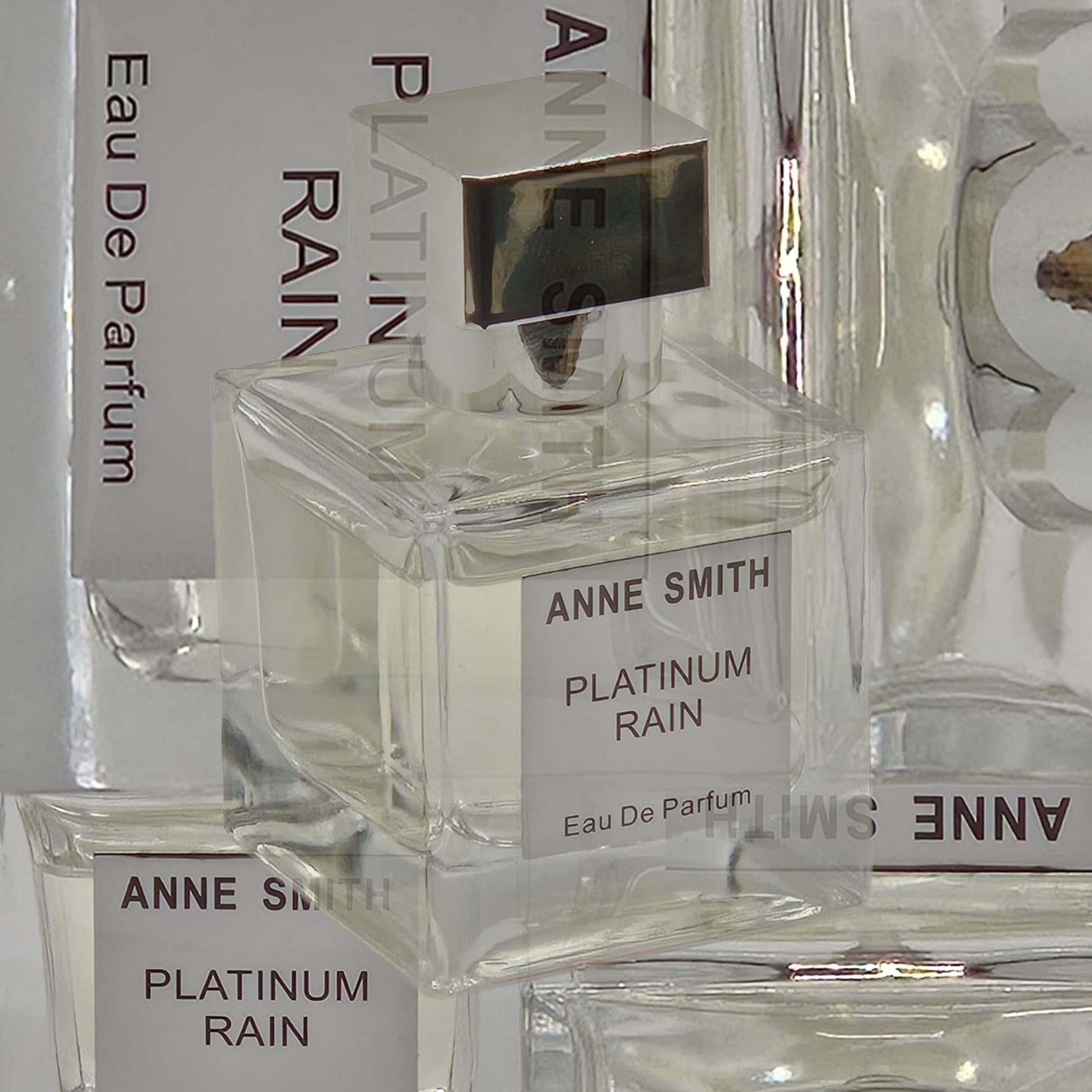 As Platinum Rain continues its descent, the Heart of the fragrance gently transitions into a serene, comforting dry-down. Soft musk wraps the skin in a smooth, lingering warmth, while subtle woody notes anchor the fragrance with stability and grace. Together, they create a refined "signature-clean" yet seductive, "airy" yet grounded mood. Platinum Rain is an ode to contrasts: metal and mist, earth and sky, freshness and warmth, united in a scent crafted for those who love the beauty of calm after the storm.